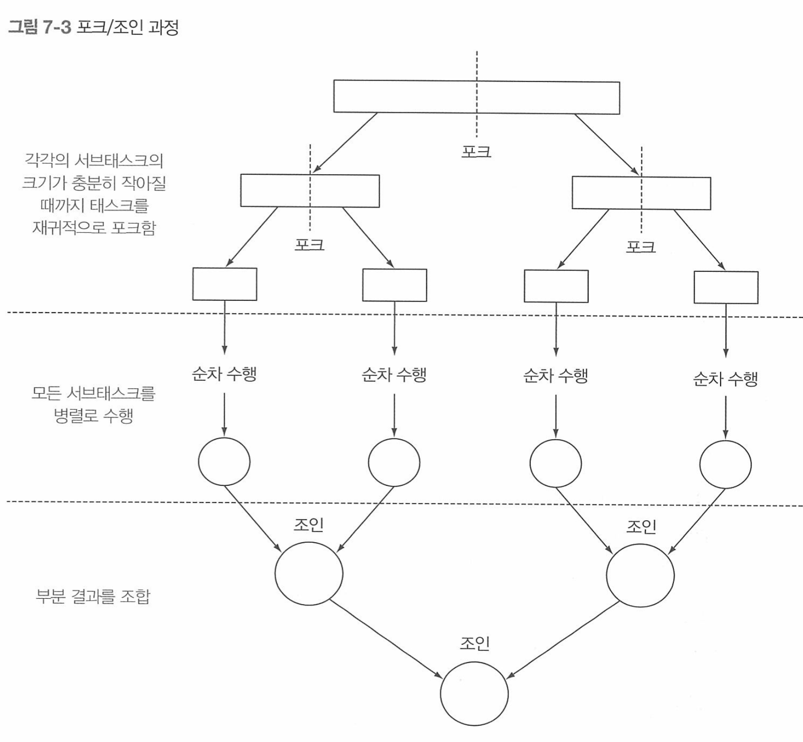 포크/조인은 서브태스크로 분할 후 각 스레드에서 처리후 머지